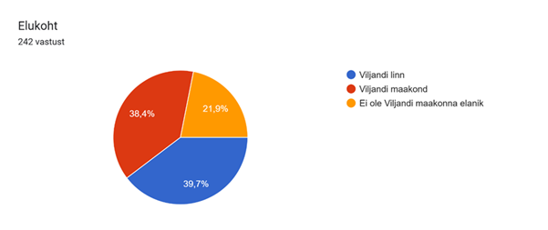 Elukoht: Selles punktis jagunesid vastajad: „Viljandi linn“ – 39,7 %; „Viljandi maakond“ – 38,4%; ning „Ei ole Viljandi maakonna elanik“ – 21,9% kogu vastanutest.